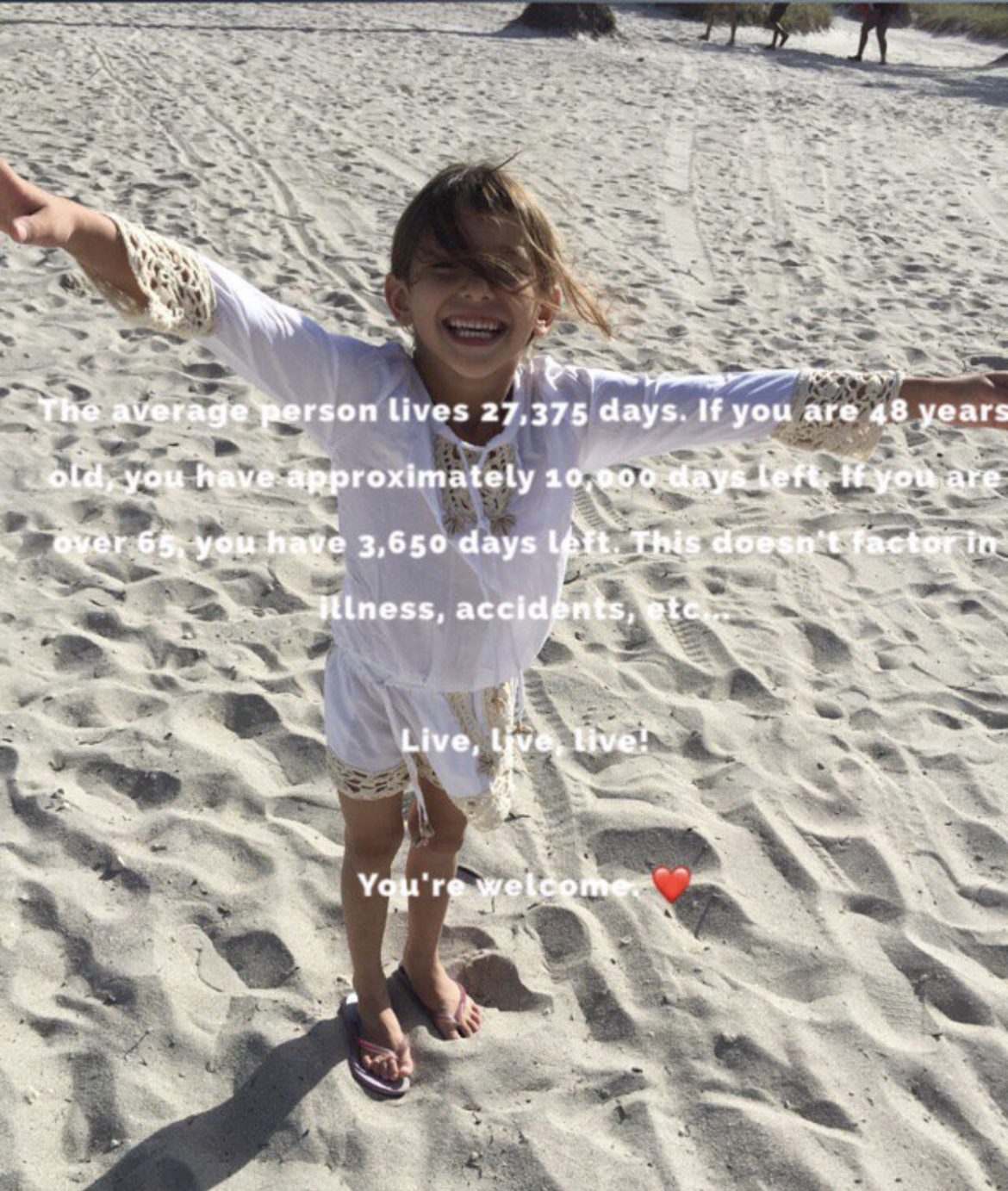 Cherryism Wa-Wa's Live, Live, Live! by audra January 9, 2018 written by audra 1.8K The average person’s lifetime totals 27,375 days. So, if you’re 48 years old that means you have (approximately) only 10,000 days left to live. If you are over 65, you have (maybe) 3,650 days. This doesn’t factor in accidents, illness, etc… What are you going to do with that time? Choose to live, live, live! You’re Welcome! ❤️ Please rate this Article Quality #Live #lifeisshort #believe 0 comment 0 FacebookTwitterPinterestEmail audra previous post Pajamas Day next post A Cauliflower A Day Keeps Inflammation Away! You may also like All Knowing Isn’t Knowing January 24, 2018 Pajamas Day January 1, 2018 Happiness Is A Present December 4, 2017 Daddy! Daddy! June 18, 2017 You’re Only As Happy As Your Least Happy... March 16, 2017 The If You Wear A Super-Hat; Be Prepared... January 25, 2017 The Listener January 1, 2017 Dear Gloriously Horrible Children May 29, 2016 The Best Mother’s Day Present Is The Present May 8, 2016 I’m Free! Free! Free! April 22, 2016
