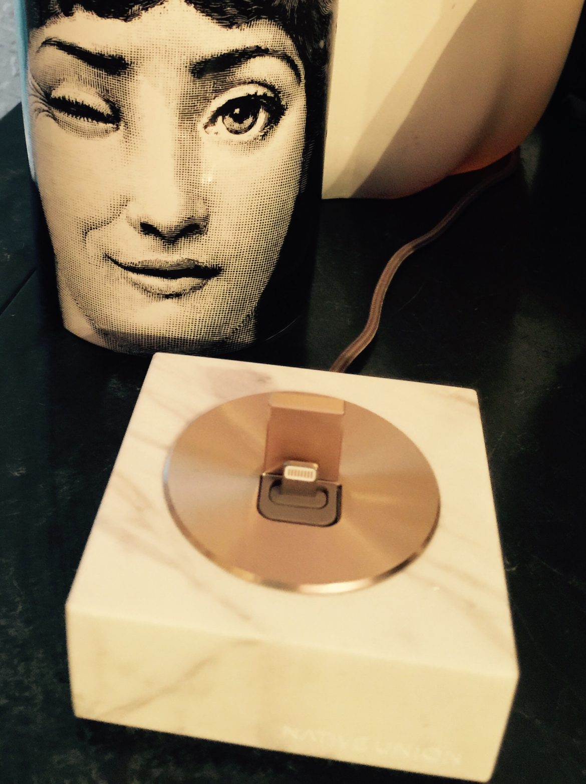 Solid, marble charging dock made by Native Union $156. Can be found at Showroom Boutique on Commodore Plaza, Coconut Grove